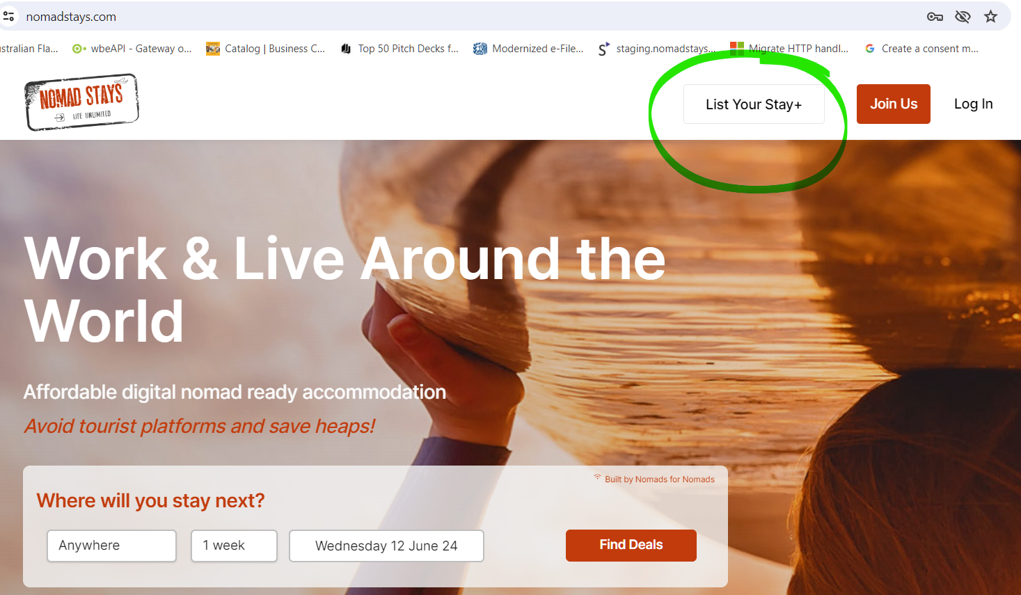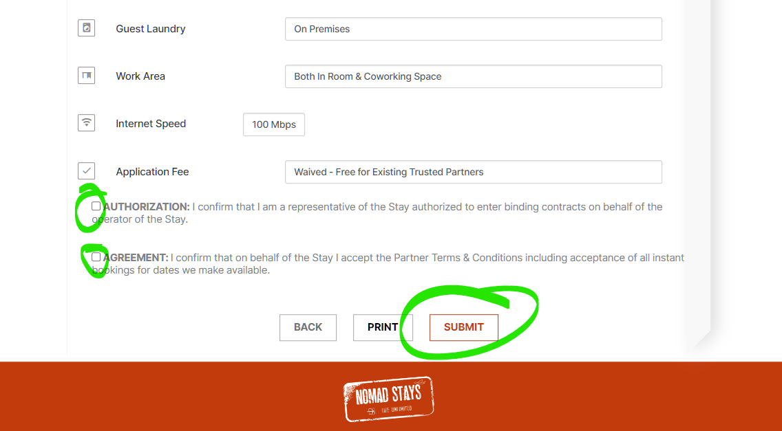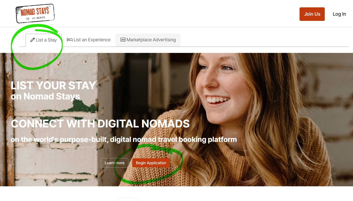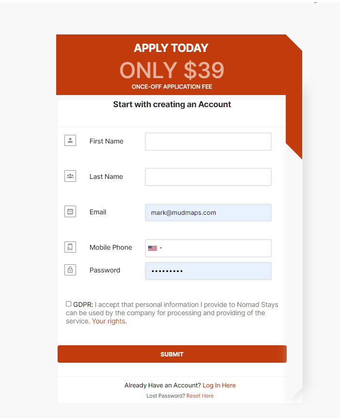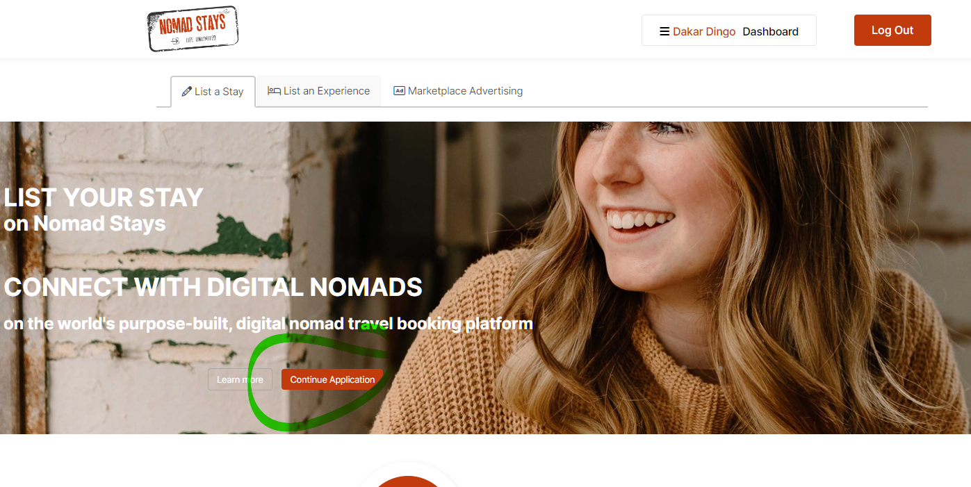 You begin an Application by creating a Nomad Stays Account and then Adding Your Application to that Account.